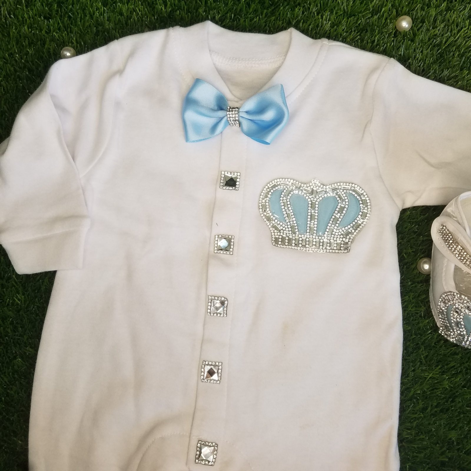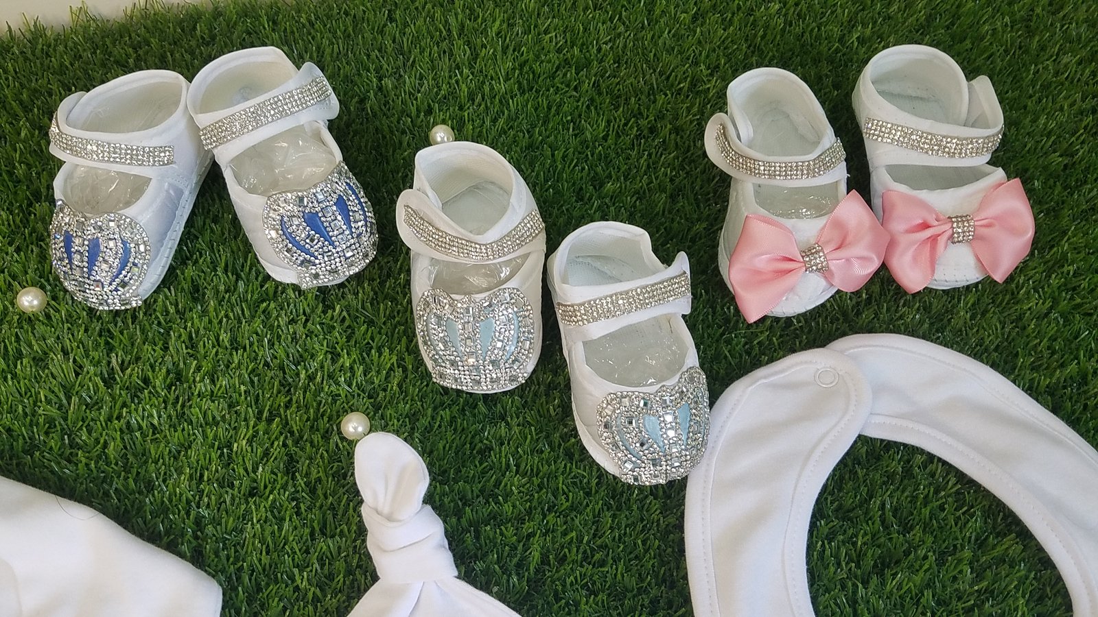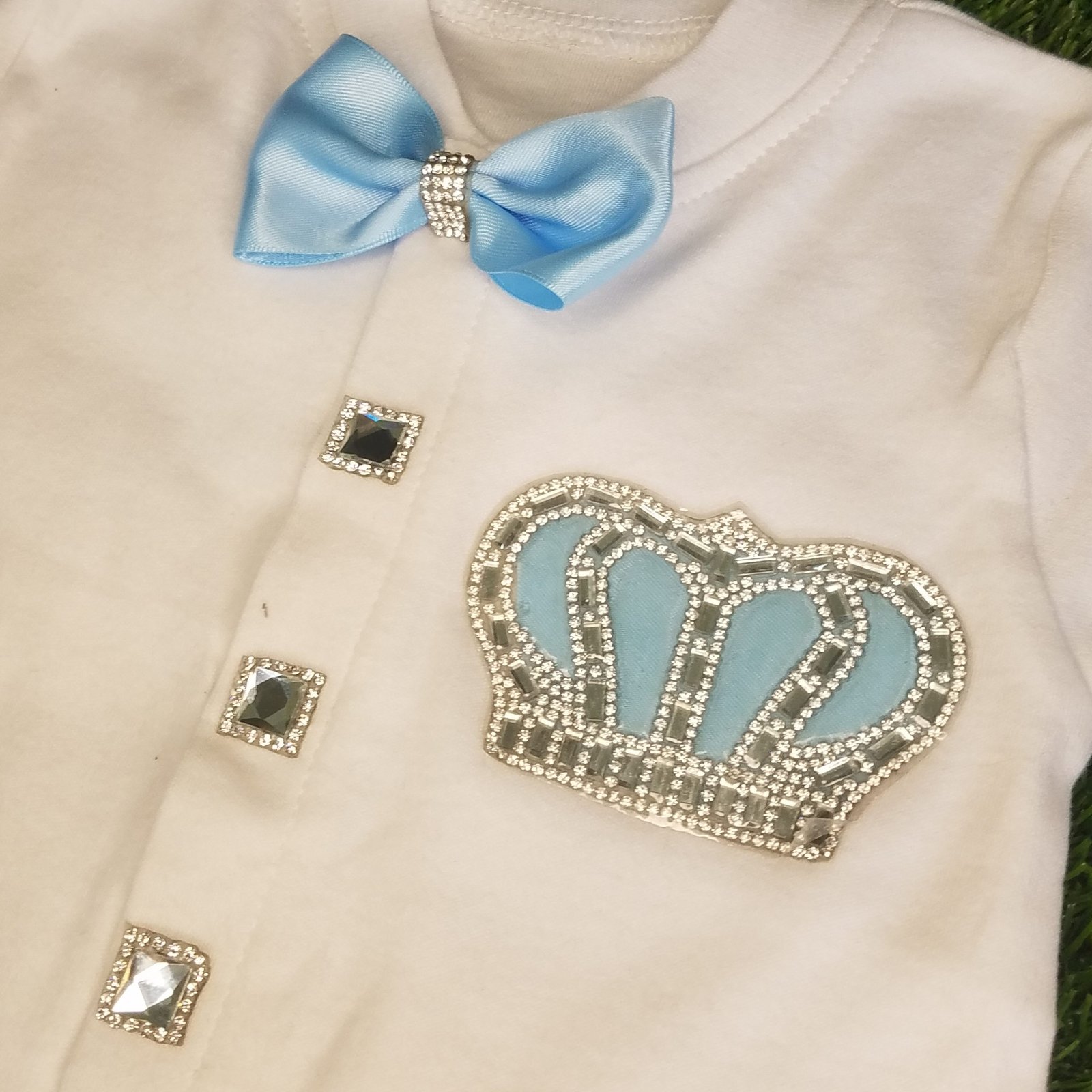 • Soft, thick cotton is embellished with bows, rhinestone buttons, and jeweled crowns.