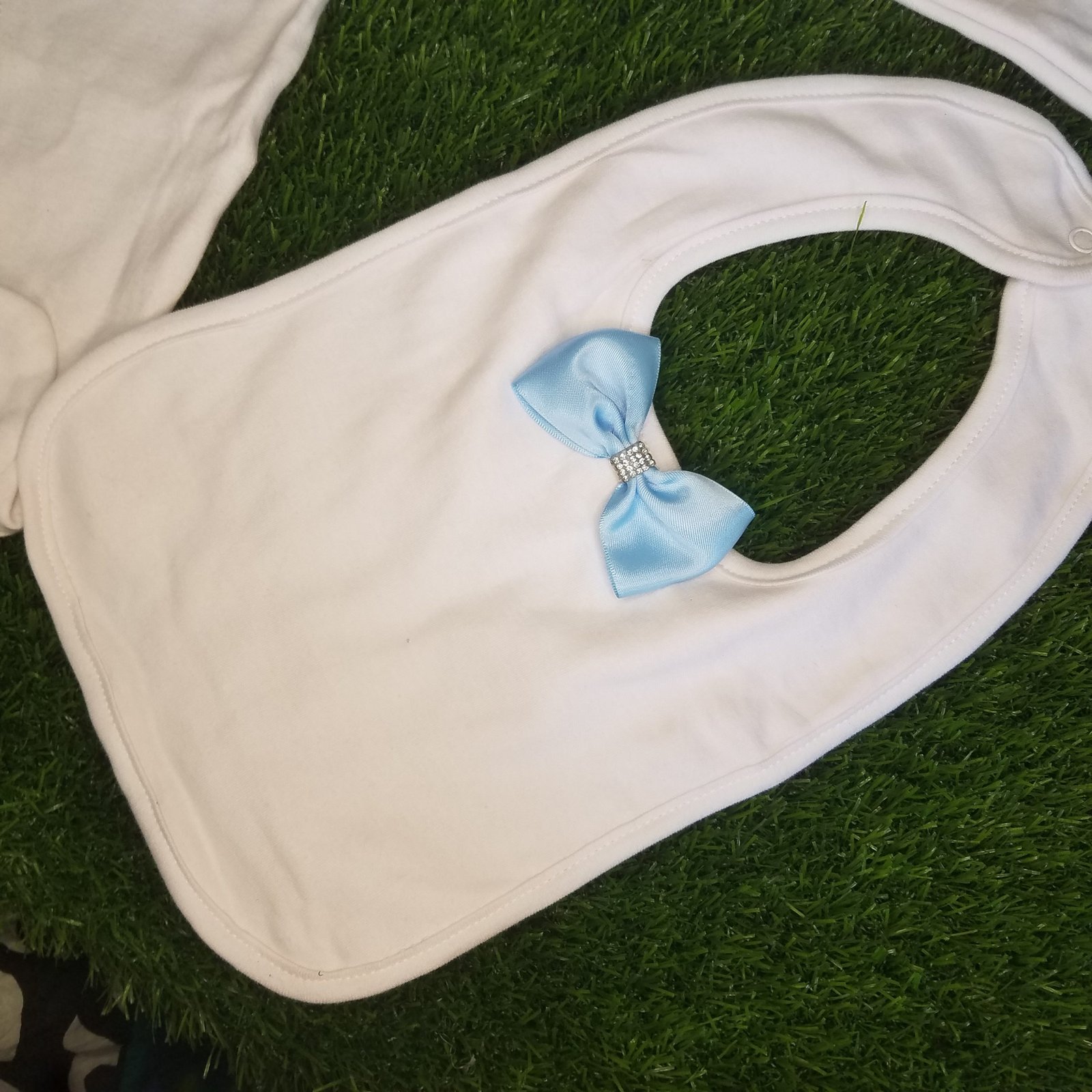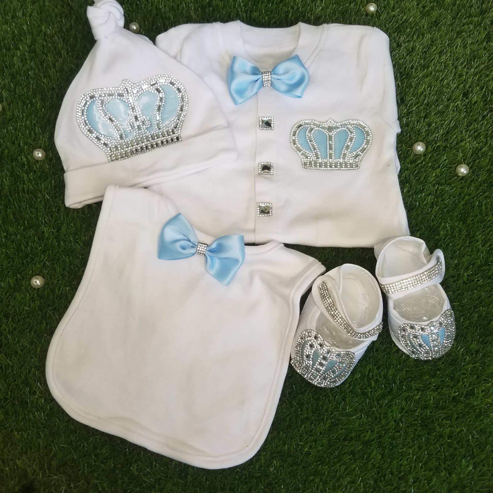 • 3 piece set includes: long-sleeve onesie, bib and cap. Shoes are only available for 0-3 months and you need to buy it separate.