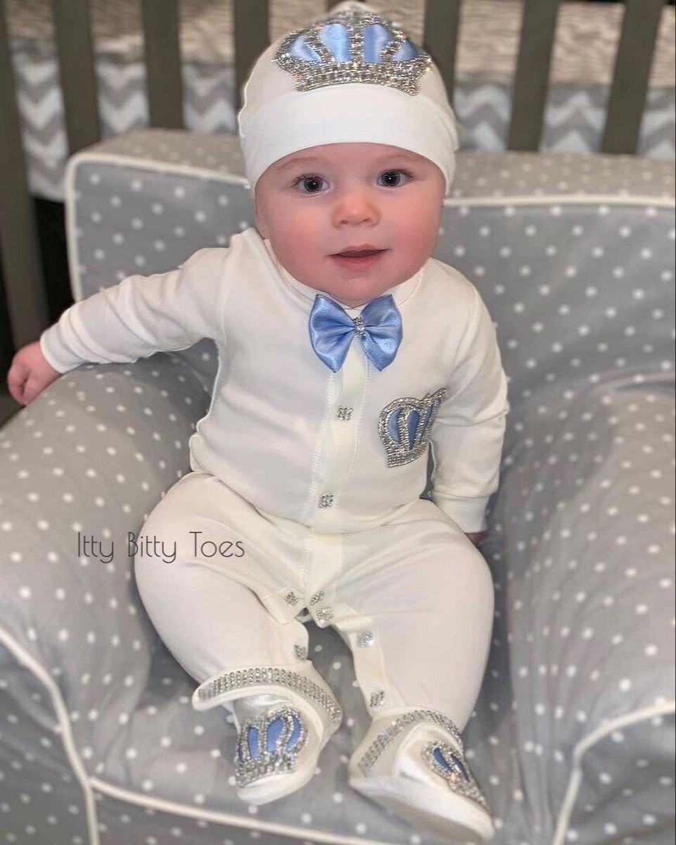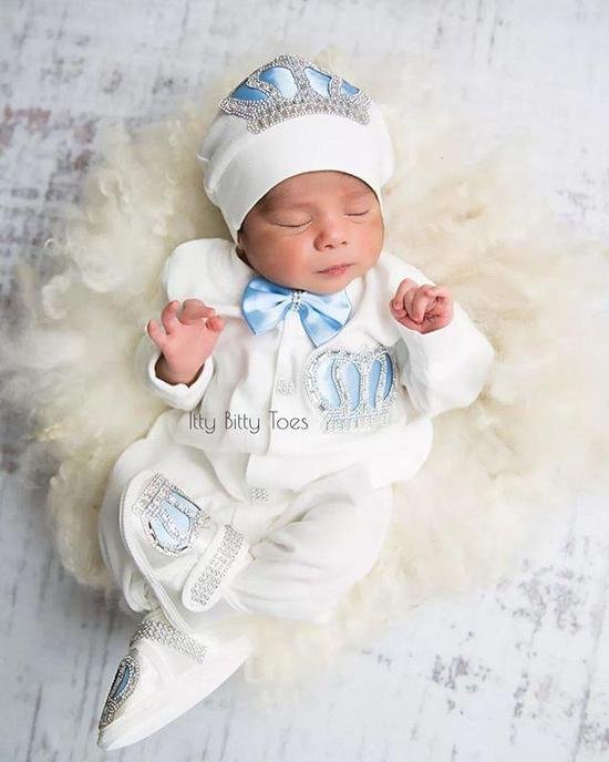 Royal Blue Baby Full Sleeves Body Suit + Bib + Cap Set Jewel Crown 4 season Summer Winter Set