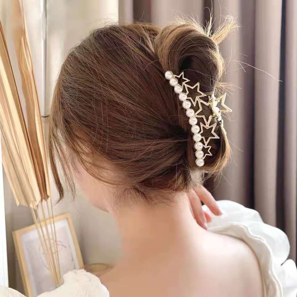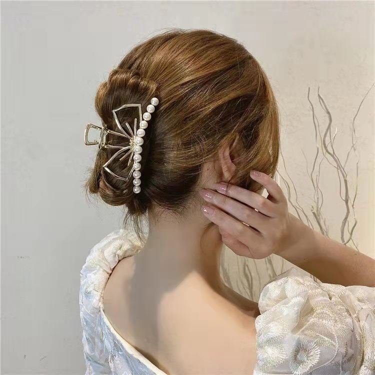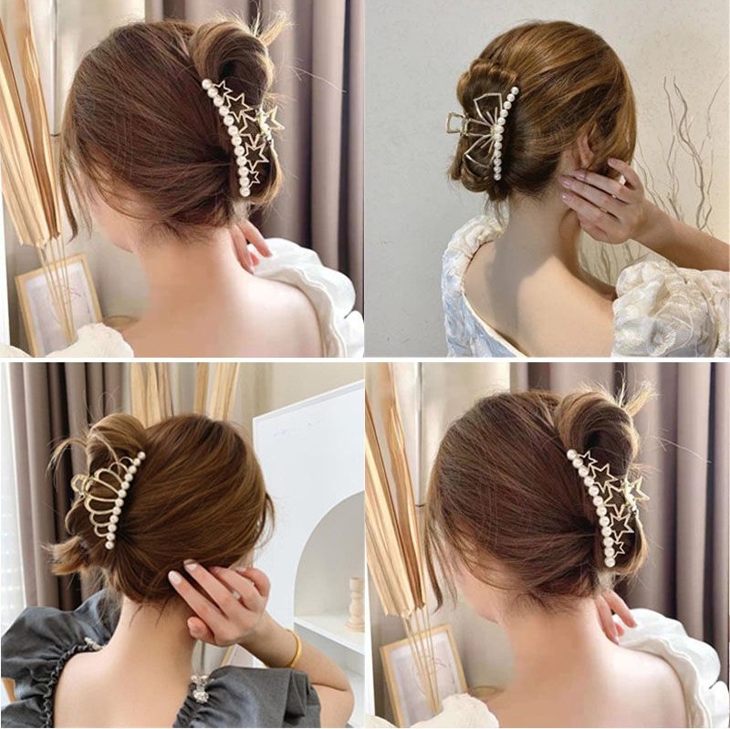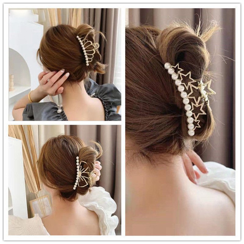 Women Big Metal Golden PearHair Catcher