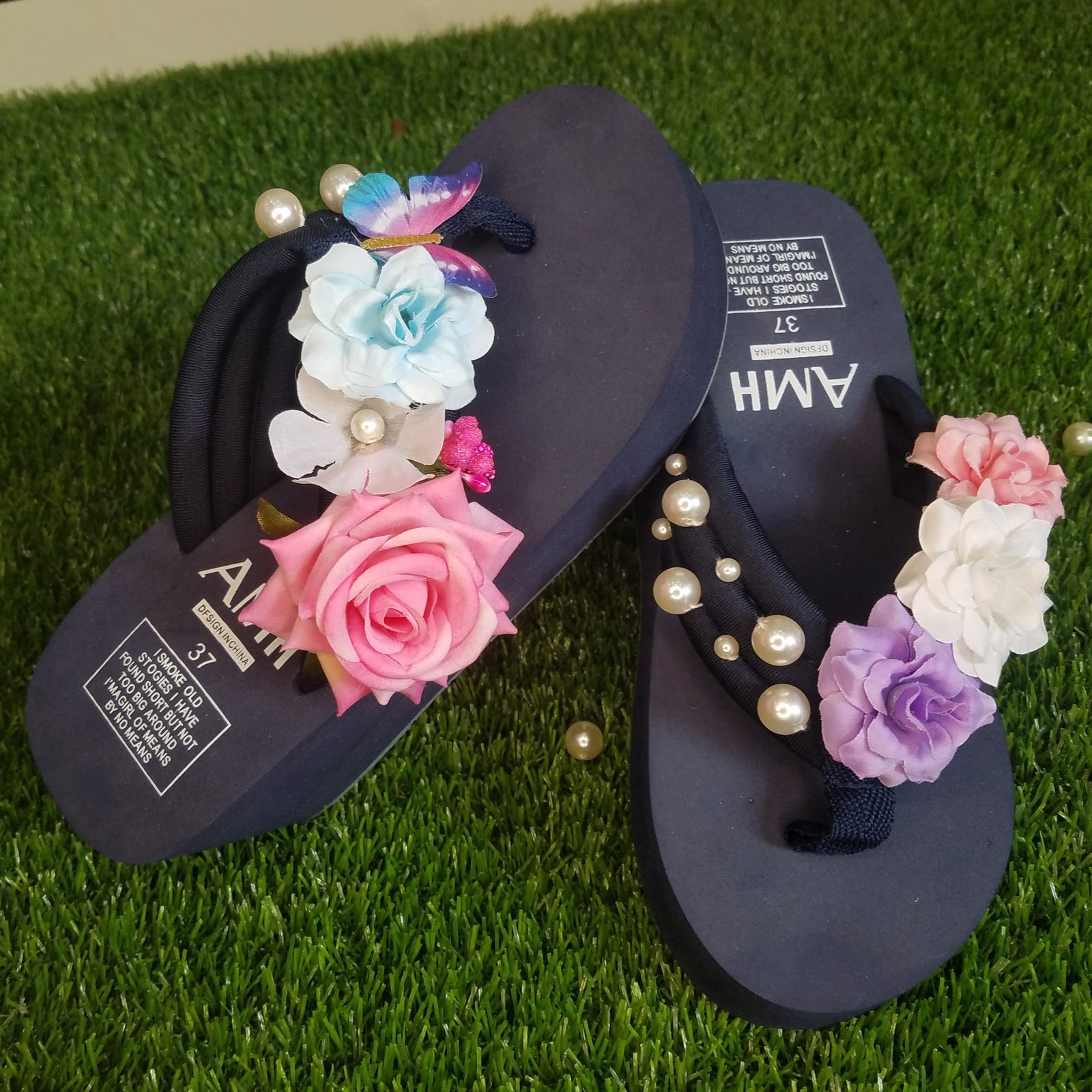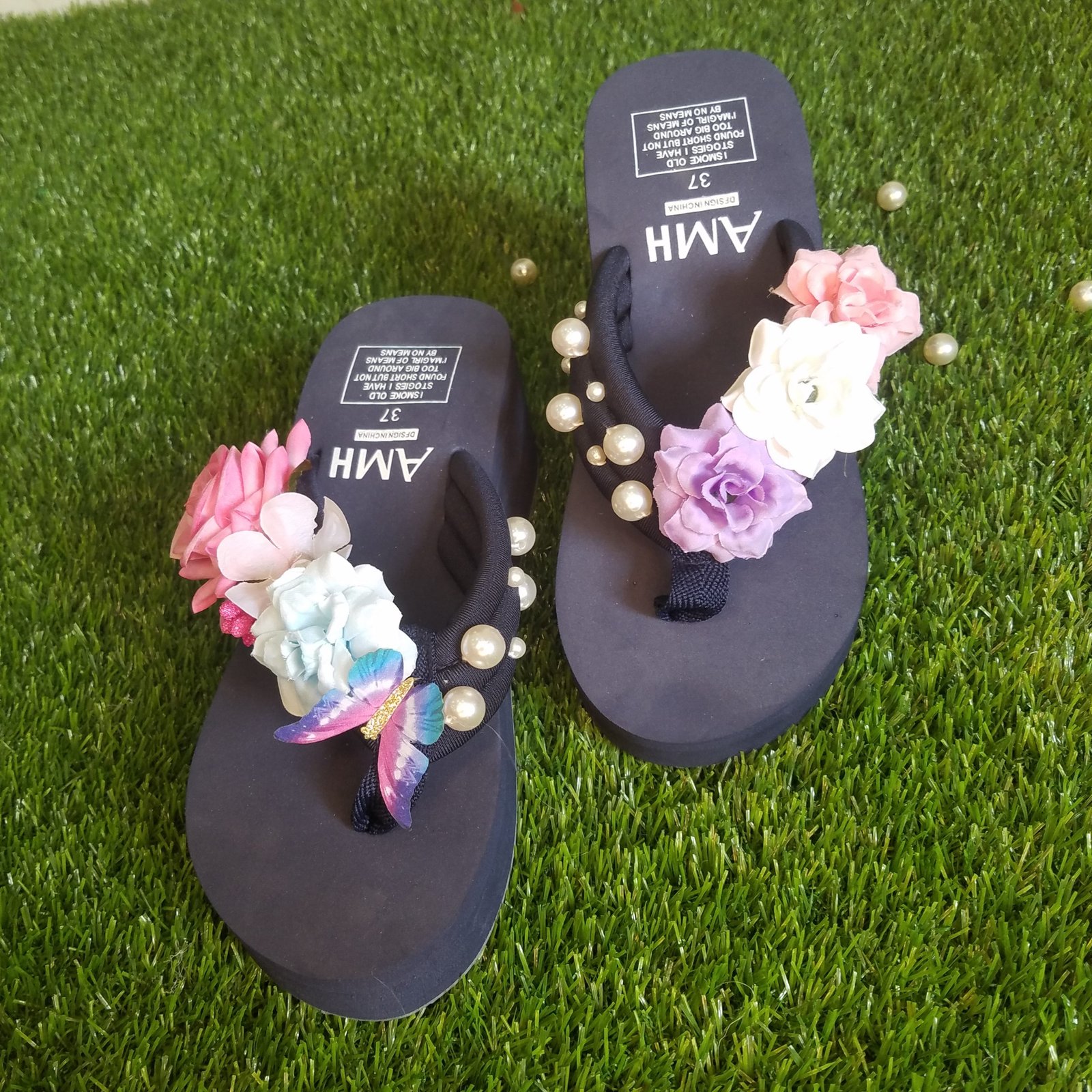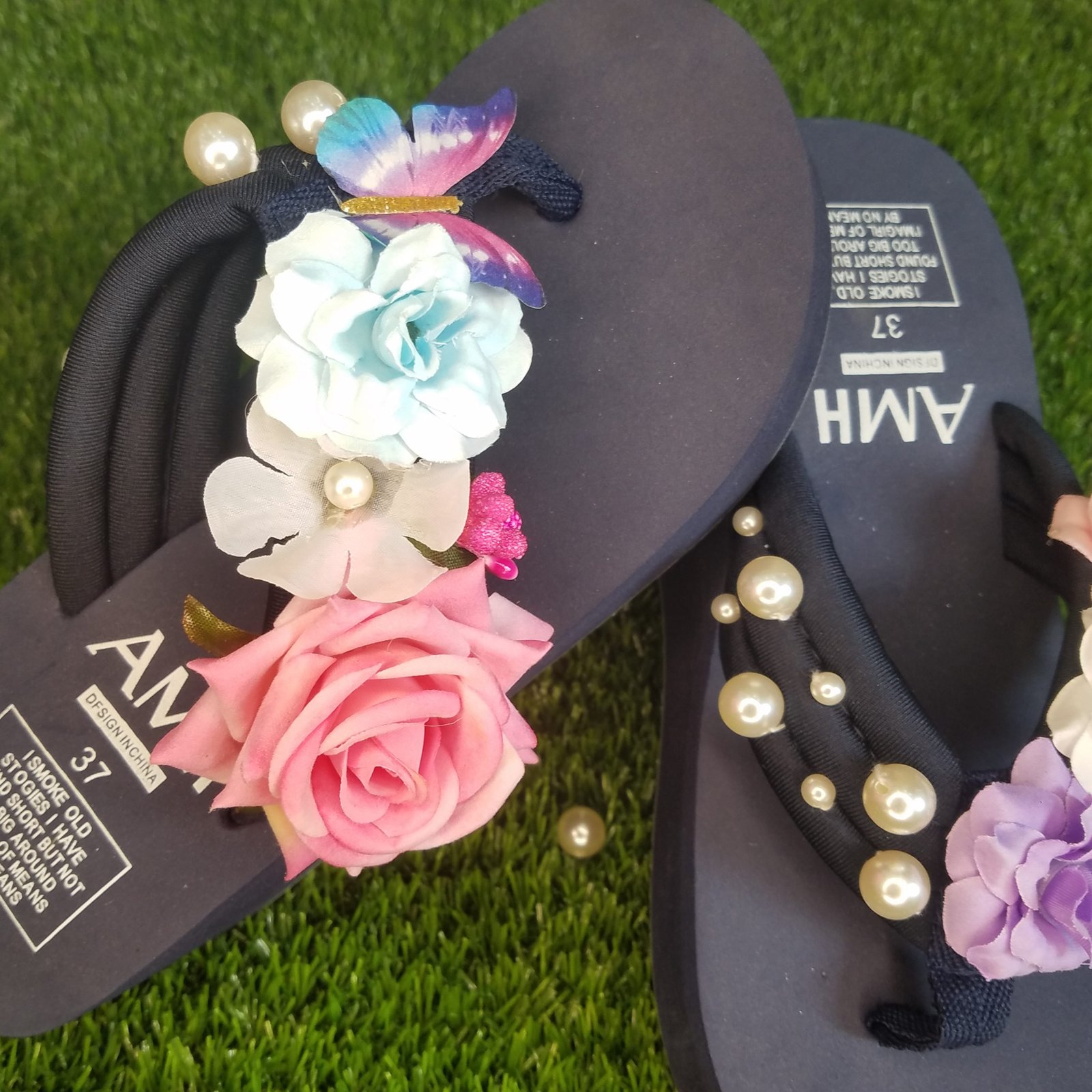 Women Multi Shades Flowers & Pearls Sky Blue Thick Summer Slipper 2,250 ₨