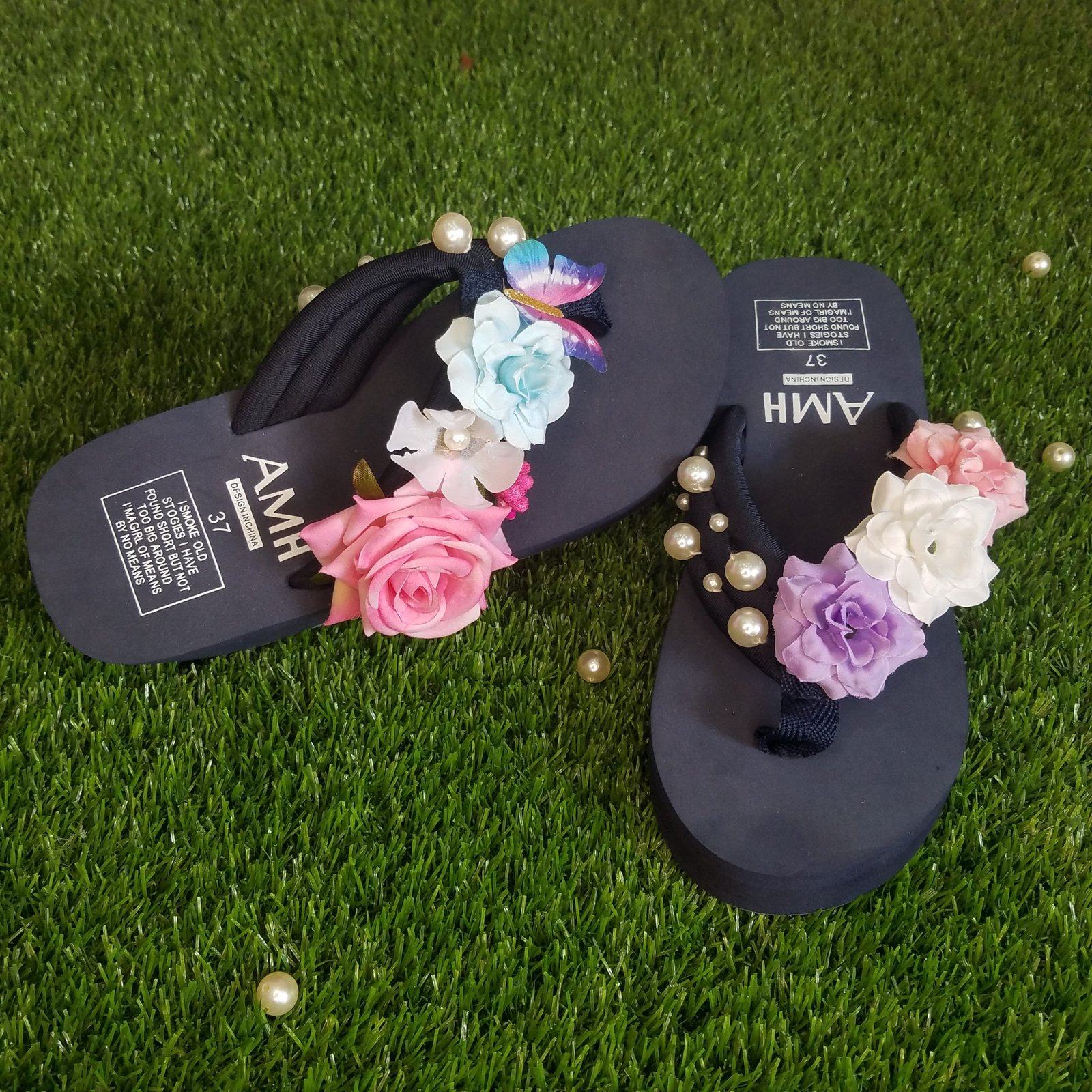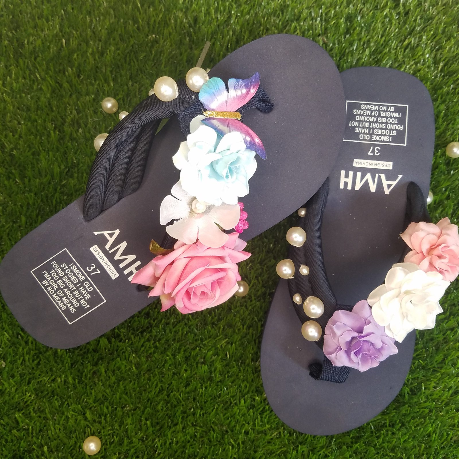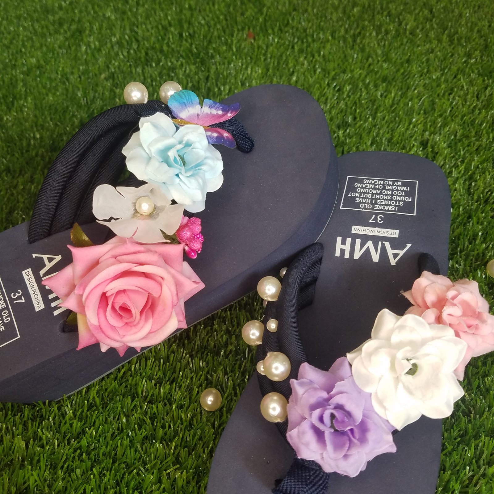 Women Multi Shades Flowers & Pearls Sky Blue Thick Summer Slipper 2,250 ₨